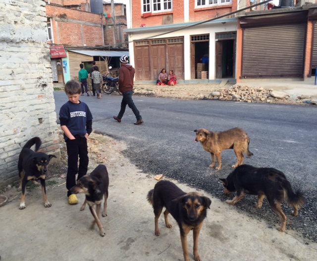 the gang ← Previous Next → Meal time in front of our gate. Raksi is on the far left. ©Donatella Lorch