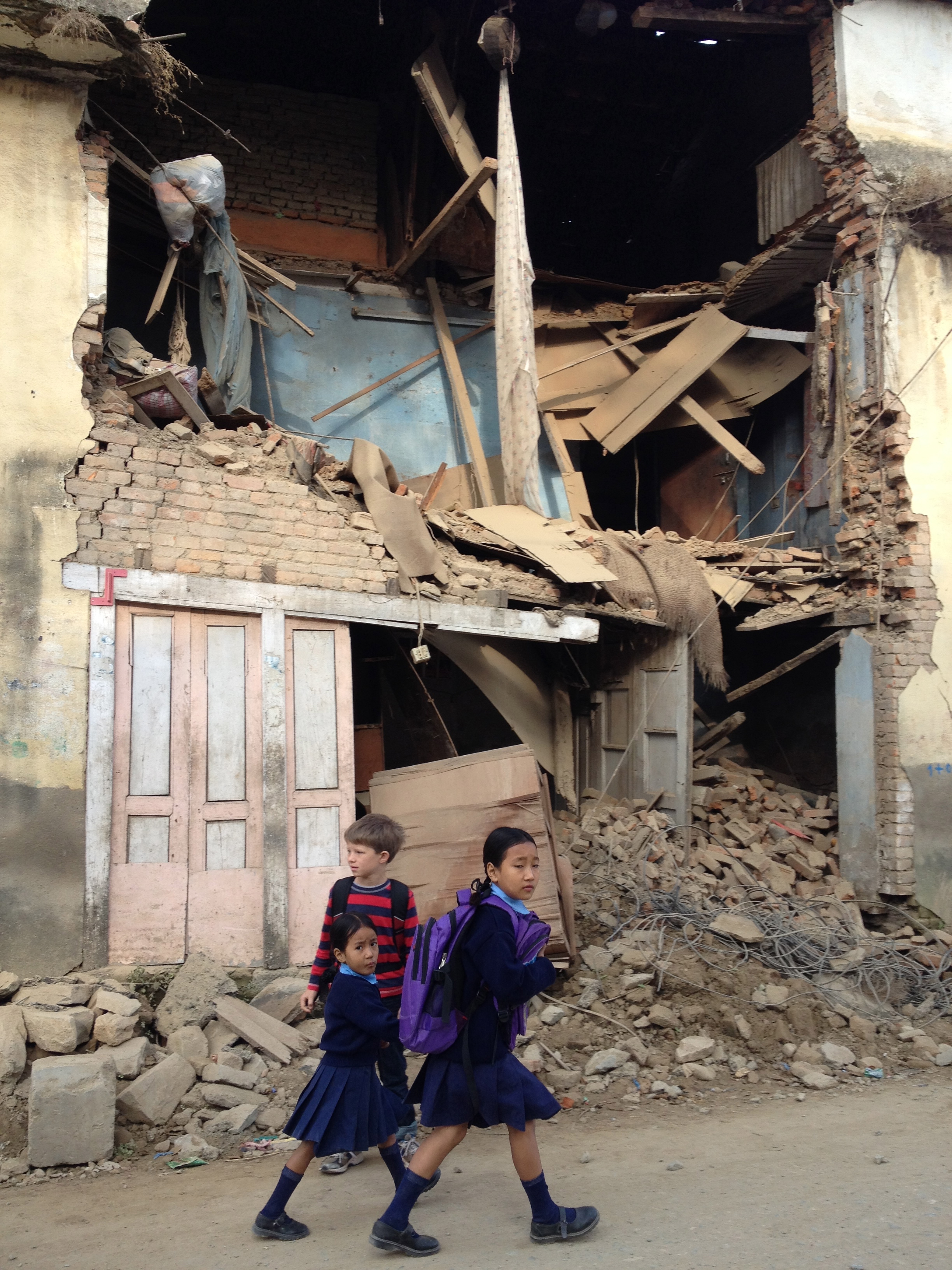 Though earthquakes are frequently felt in the capital city (two since August), earthquake history shows Kathmandu gets hit by a major quake every 75 years or so. In a recent email, the U.S. Embassy here in Nepal reemphasized the need for being prepared for the inevitable: “it is not a matter of if but of when,” I was reminded. We are definitely due. John, my husband, argues with my angst. “Earthquakes don’t observe anniversaries,” he reminded me this morning. Followed by the line he used to convince me to move here six months ago: “Earthquakes aren’t like pregnancies. They don’t have due dates.” We have learned some lessons in our half year in Nepal. I slept through the 5.0 magnitude earthquake in August and was shaken awake by John yelling “Earthquake!” We then walked out onto our balcony instead of doing what we were supposed to do: grab our son from his bed and get out of the house.