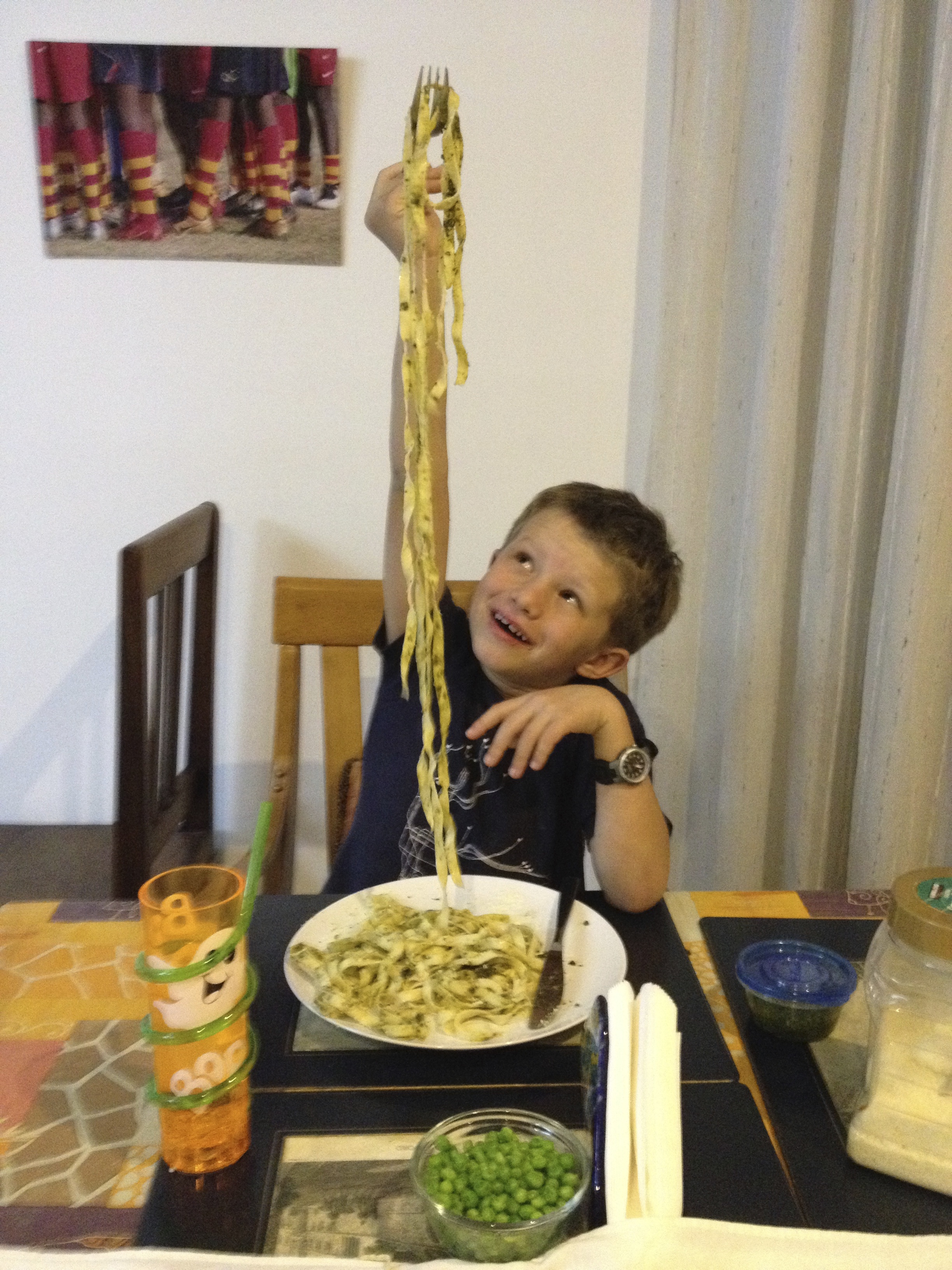 FaceTime is everywhere with us. Here John looks on as Lucas samples pasta he helped make. © Donatella Lorch