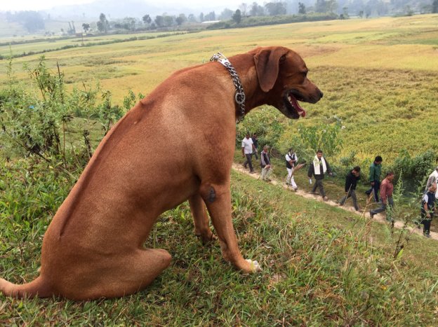 This picture of Biko was taken on the southern edge of the Kathmandu Valley during one of our regular weekend hikes. We were stopped on this knoll, watching a traditional Newar funeral procession.