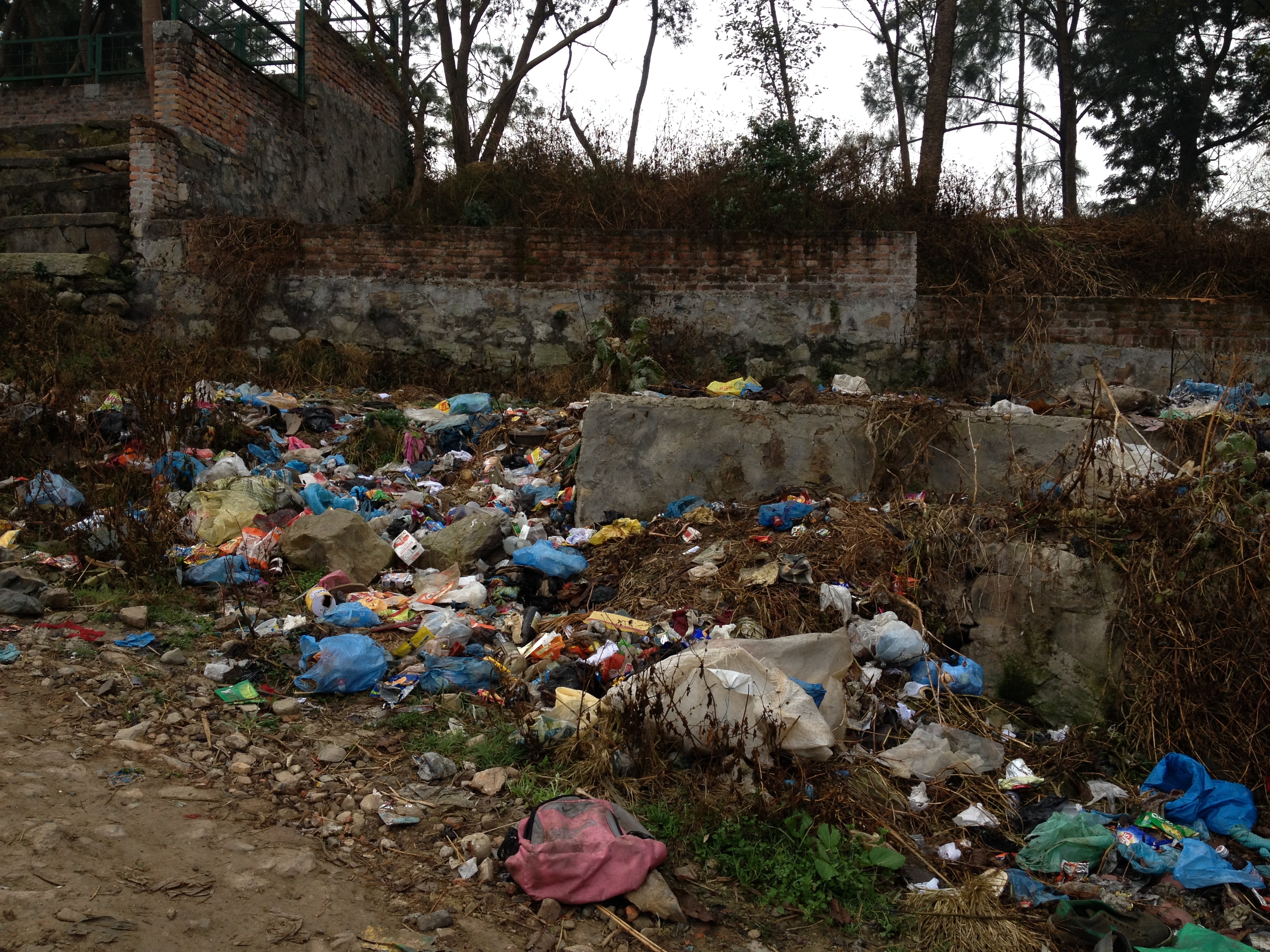 The government provides insufficient garbage dumping space. Open dumping is ubiquitous. Nepalis dump their garbage on roadsides and along river banks. ©Donatella Lorch