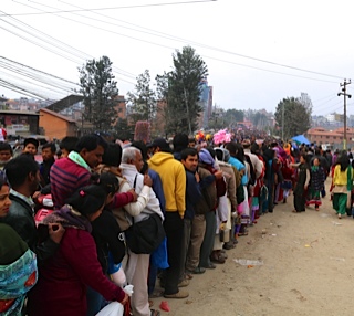 On Teej, women queue on long lines to worship at temples all over the Kathmandu Valley and beyond. ©Donatella Lorch
